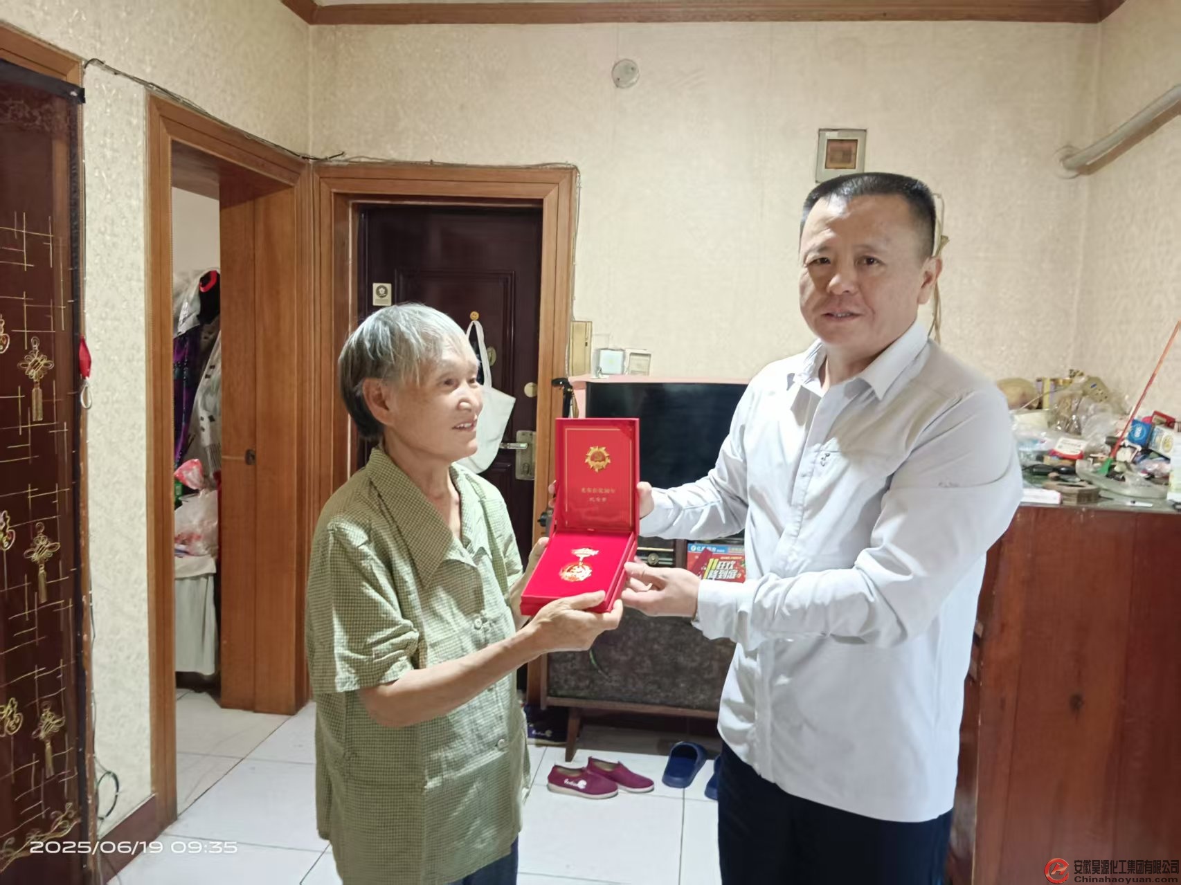 6月19日上午,公司黨委辦公室主任謝為民等一行,代表公司黨委為黨齡達到50周年的退休老黨員儲可俠、李興平等五位老同志送去“光榮在黨50年”紀念章,感謝他們曾經(jīng)為昊源公司發(fā)展所做出的貢獻。
